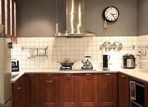 [p=24, null, left] [p=24, null, left]3.抽油烟机:由于中餐就煎、炒、烹、炸,油烟较多,所以厨房装修中抽油烟机要选功率大的。市场上有一种抽油烟机架,可以把抽油烟机直接搁在上面,很方便,且它的两侧是玻璃或铁皮做的隔板,既可以防止油滴四溅,也可以形成一个相对封闭的空间,使抽油烟机排油烟更彻底。必要时,还可以考虑加装一个排气扇,以保证油烟能被清除干净。
