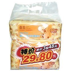 湿巾我之前看了一个前辈的帖子说喜多的湿巾是性价比比较高的一个,就囤了6个80片包装的,现在22天用了3包。此外,还囤了10个贝亲的10片小包装,想说出门的时候用,也用了几包好像,但是因为我没给孩子换过纸尿裤还,所以还没有使用心得,不过下次我想囤些NUK的湿巾,大家都说不错!